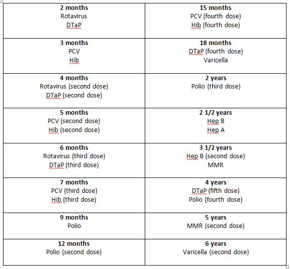 Here is the immunization schedule we settled on for Thing 3, with the blessing of our pediatrician.  I’m grateful she respected our wishes and was open to having a discussion with me about the pros and cons of each shot.