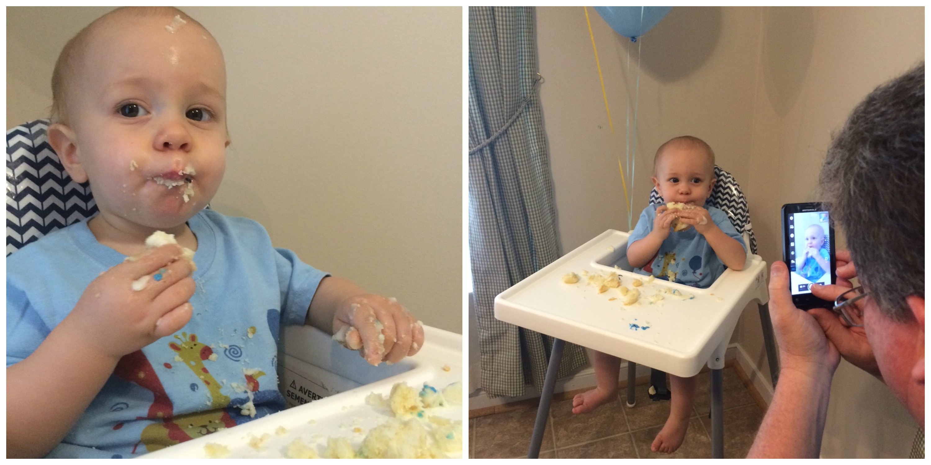 We had a low-key party with family and a few friends. We grilled burgers and hot dogs and inhaled cupcakes. Thing 3 played hard, but kept his stone-cold-sober party face on. He did not want to crack a smile, but he loved his cupcake and playing with his cousin.