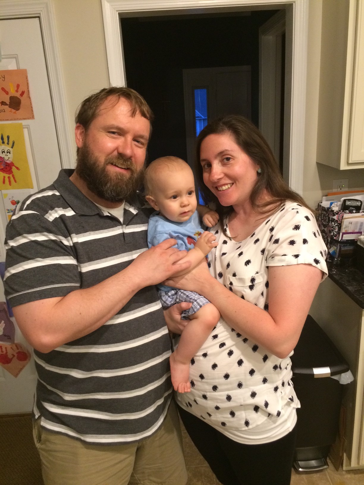 This baby is such a good boy! He loves to play peek-a-boo and patty cake. He blows kisses and greets everyone by waving when they come through the door. He turns every small toy into a phone, holds it up to the back of his head, and asks, “Hiya?” He gives these ridiculous open-mouth slobbery kisses. He is becoming more opinionated and independent (and antagonistic towards his big brothers). He is speed-demon crawler and champion cruiser…but has not started walking alone quite yet. He looks so adorable when he cuddles with his favorite blanket. He points at Cheerios and Goldfish when he wants his favorite snacks, although he loves all food. He wakes up happy almost every morning and laughs at his Daddy’s funny faces.