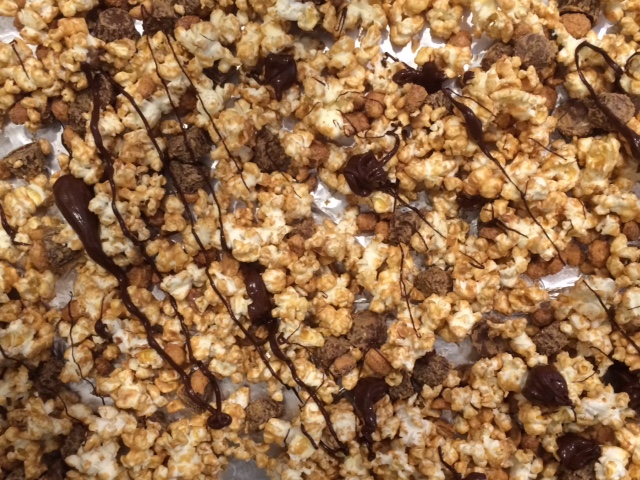 You can transfer the ice cream to a loaf pan, cover with foil, and freeze–BUT if you use Greek yogurt, use another vessel. The yogurt’s acidity has a yucky reaction to metal. I used a Chinese take-out plastic container. Add chocolate chips or whatever else at this point. Freeze it until the ice cream is firm enough to scoop.