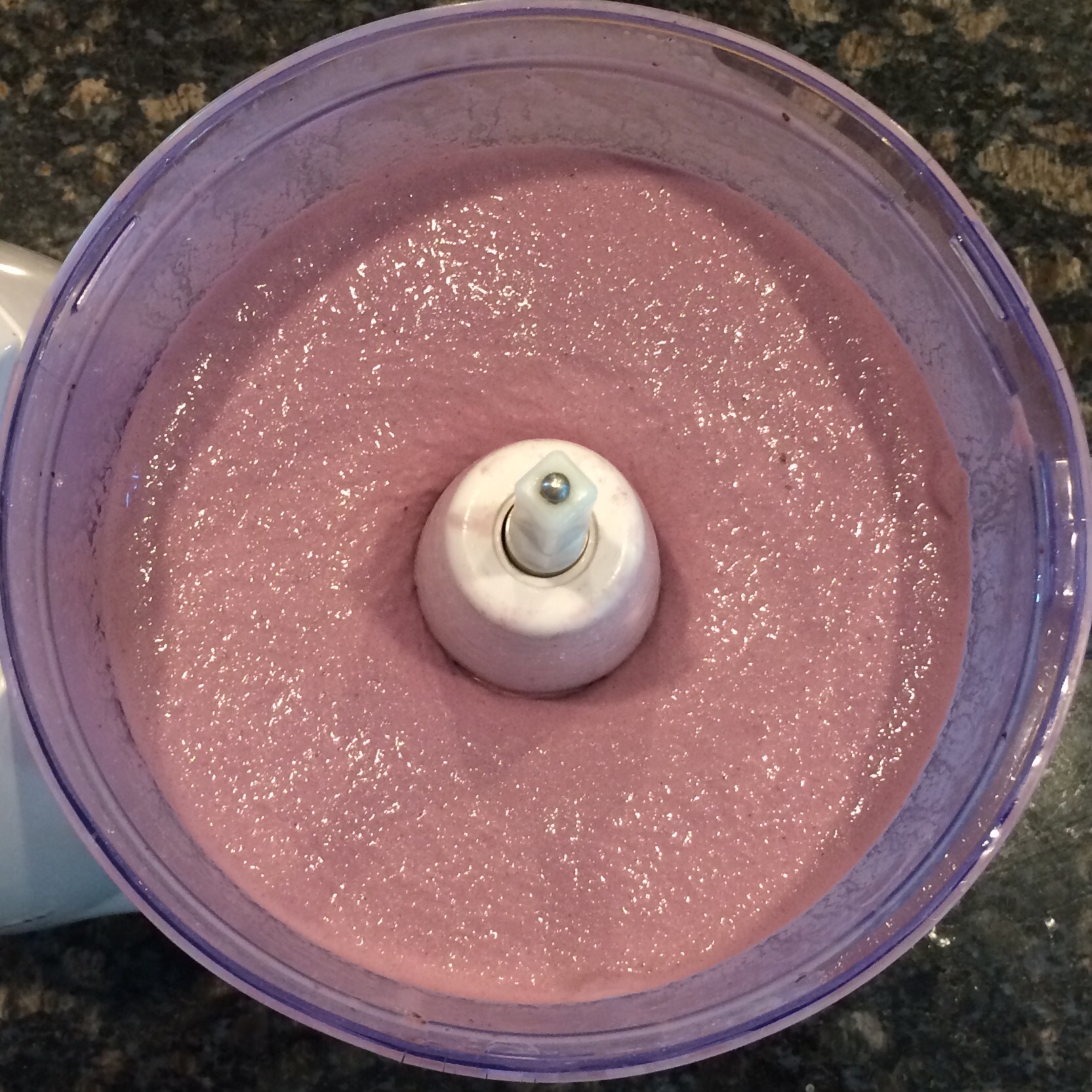 On Day 2, beat the hell out of that freezer bag. The frozen mixture needs to be broken into smaller pieces before it gets pulverized in the food processor. Take out all your aggression, break it up, put those pieces in the food processor, and process until smooth. This process took several minutes.