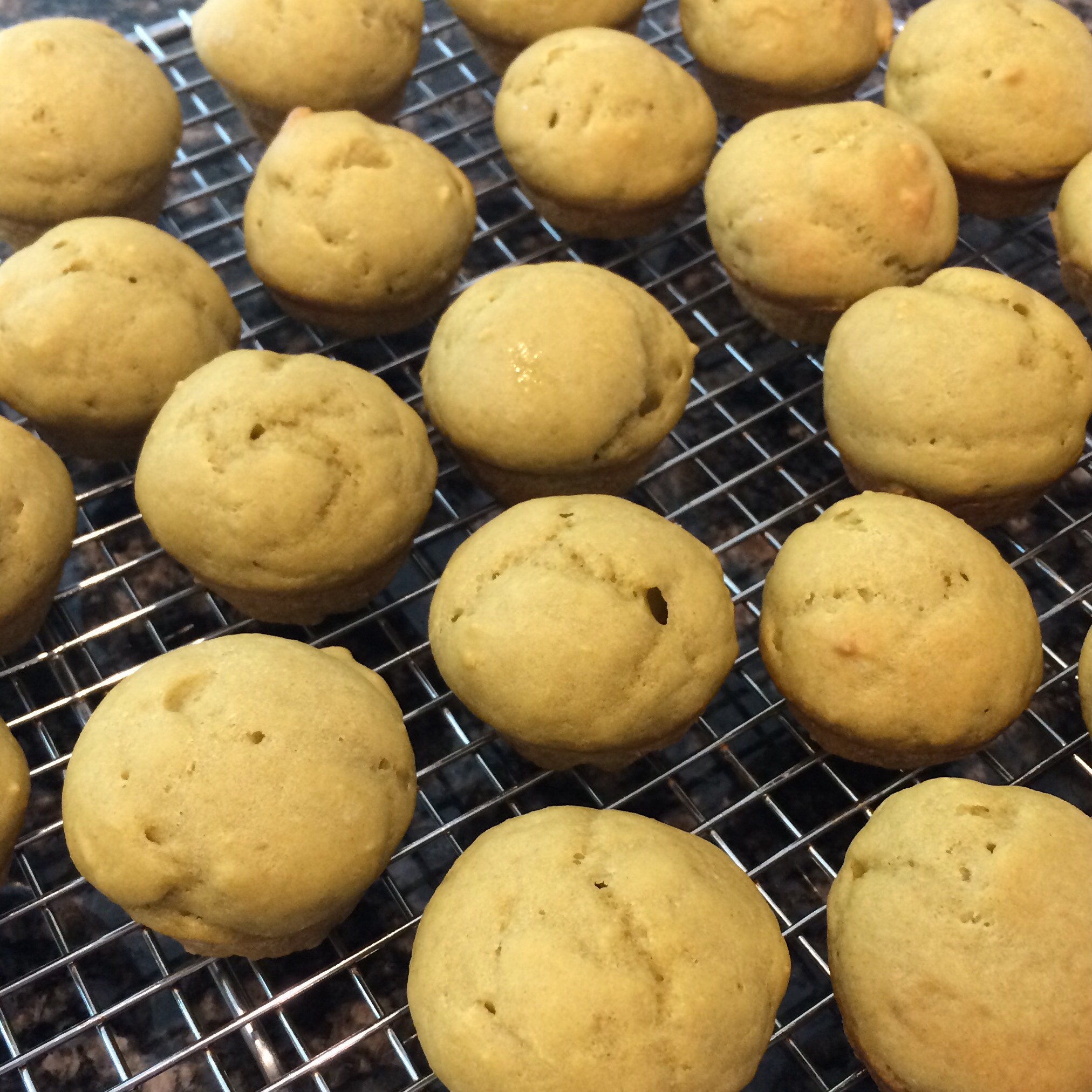 Preheat oven to 350 degrees and grease two mini-muffin tins.