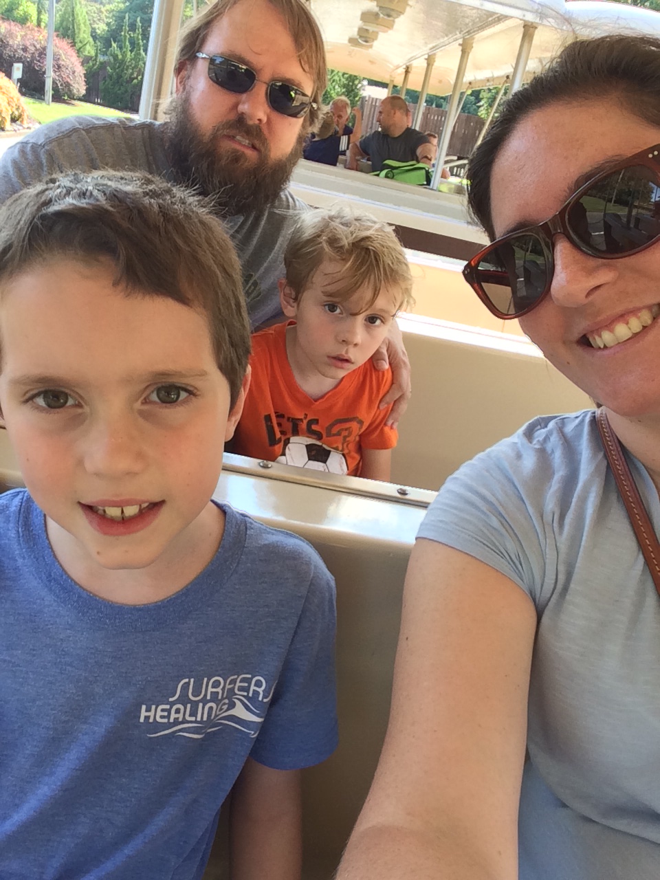 We stopped at Busch Gardens and spent a few hours riding roller coasters before continuing on to Virginia Beach. The boys rode the log flume for the first time, but of course it turned into a Thomas & Friends reference…we were on Misty Island, with jumping Jobi logs, looking for Bash, Dash, and Ferdinand. It was a great day, the boys were well-behaved, and we enjoyed family fun time while Thing 3 stayed home with the grandparents.