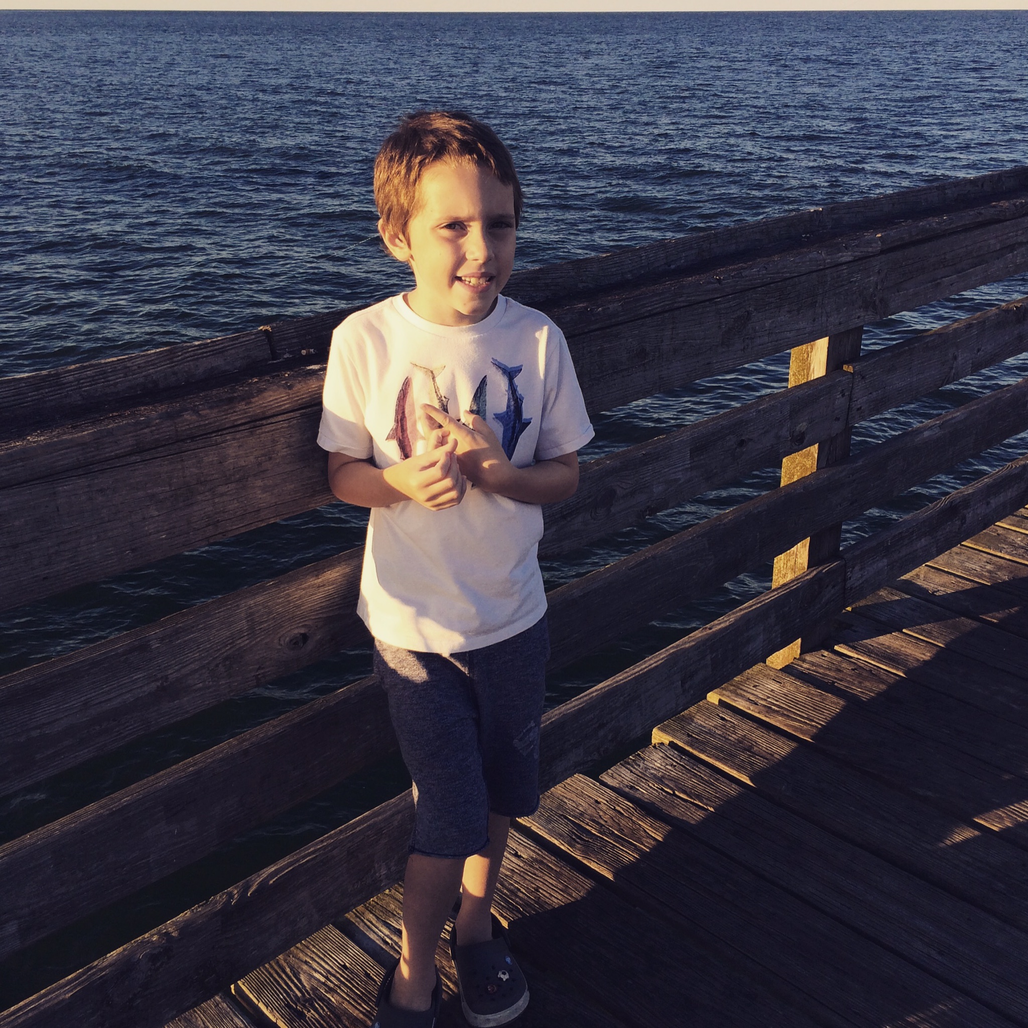 Thing 1 and I walked to the end of the pier and saw a fisherman hook a shark. That was a little disturbing, but Thing 1 was not phased.